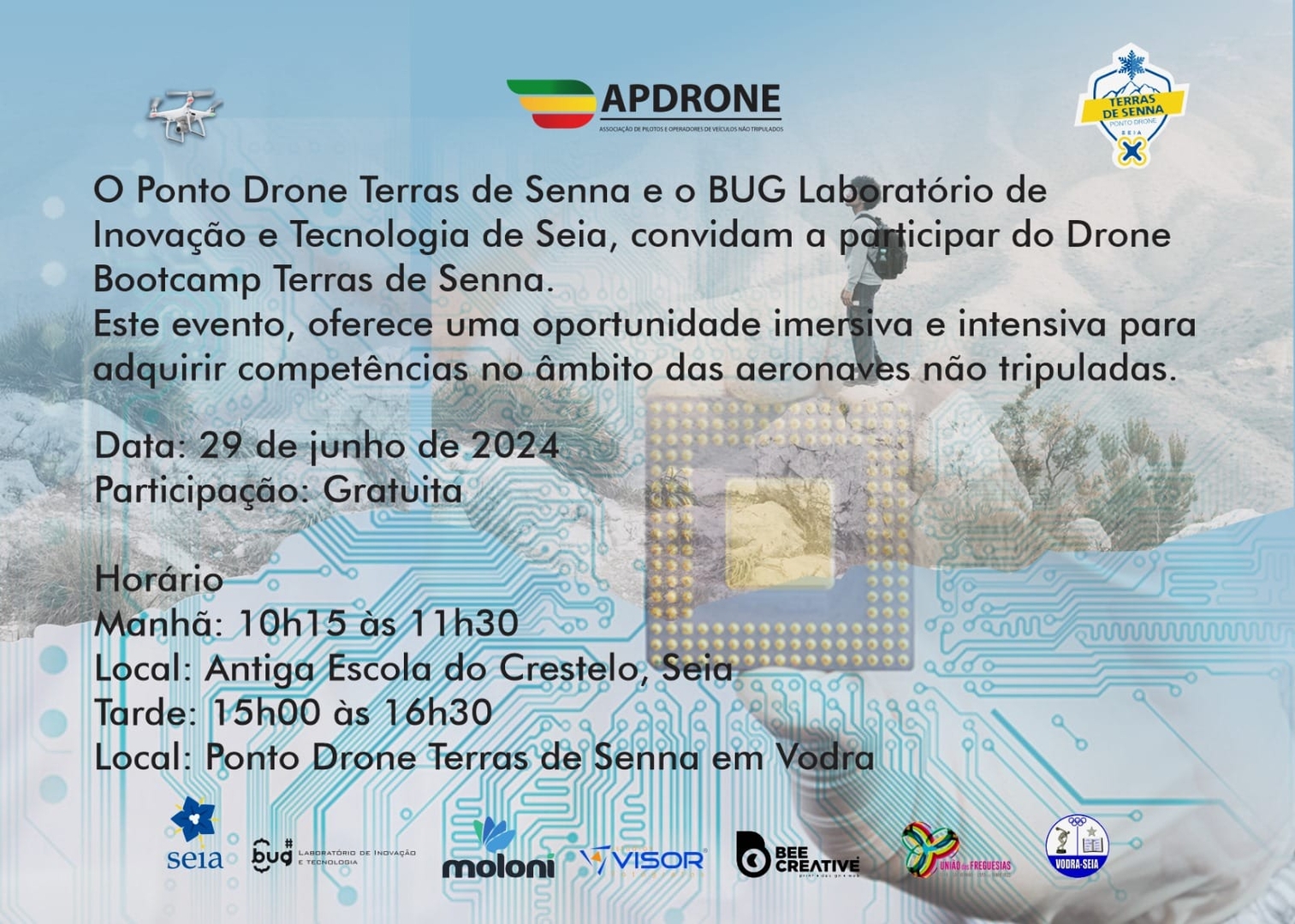 Parte teórica: O futuro depende do rumo que tomamos no presente. Entender os drones como tecnologia aliada na evolução e no desenvolvimento de habilidades e capacidades. Neste Drone Bootcamp irás de forma imersiva obter conhecimentos básicos sobre o mundo das aeronaves não tripuladas.